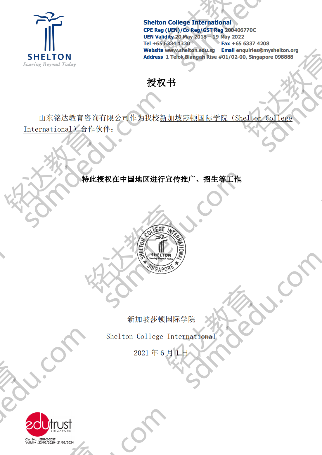 新加坡大学授权书
