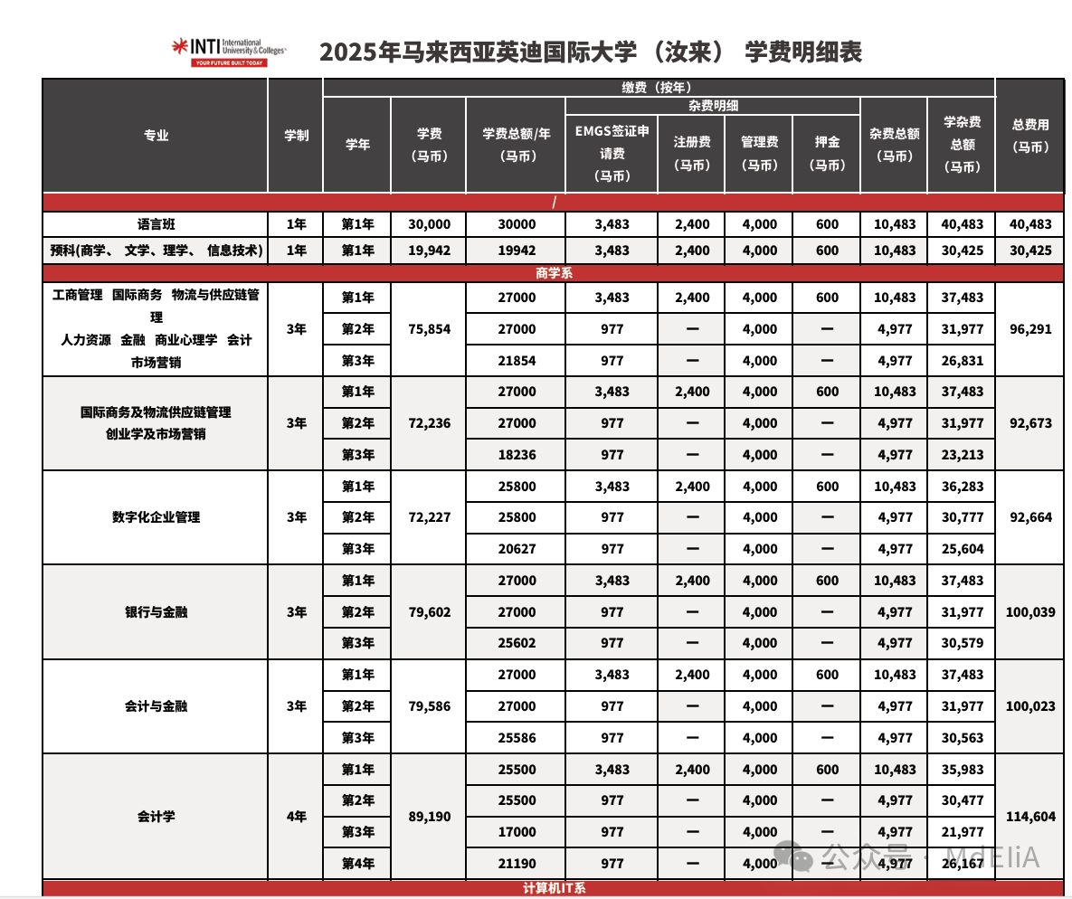 专业商科专业约4- 6万马币,工程专业约5-7万马币酒店管理专业约7-9万马币。