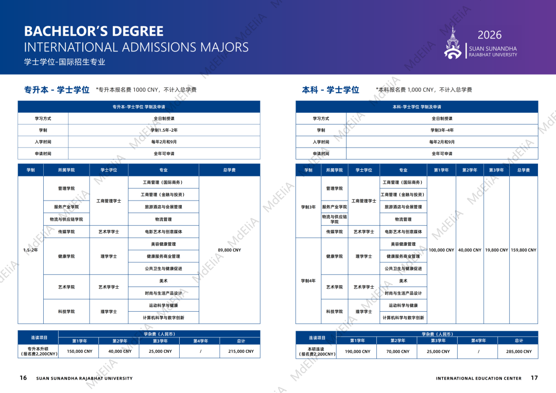 泰国宣素那他皇家大学2026招生手册