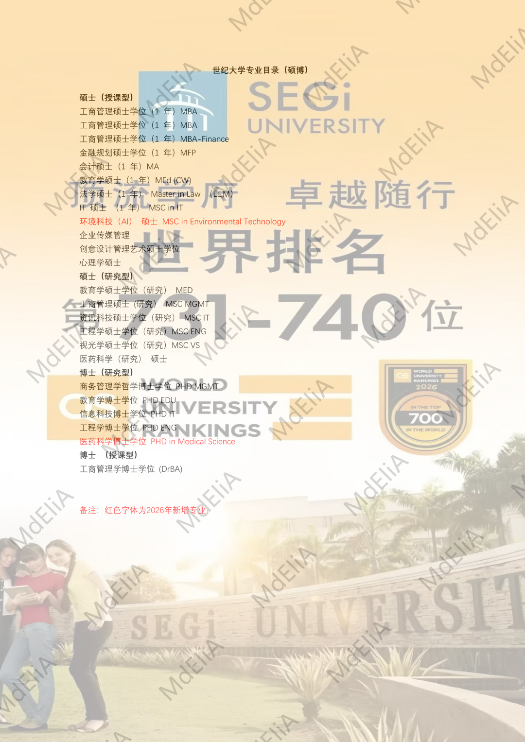 马来西亚世纪大学SEGi专业目录更新