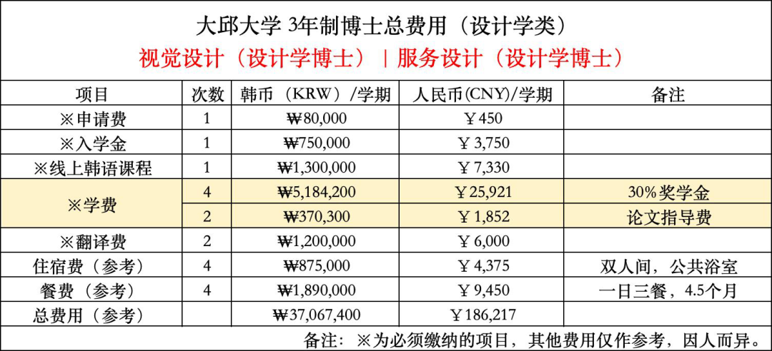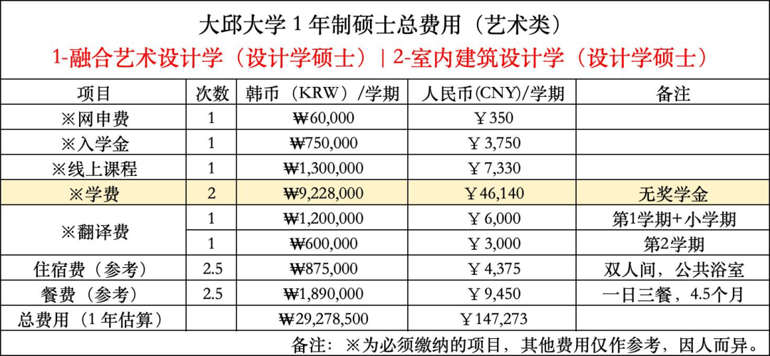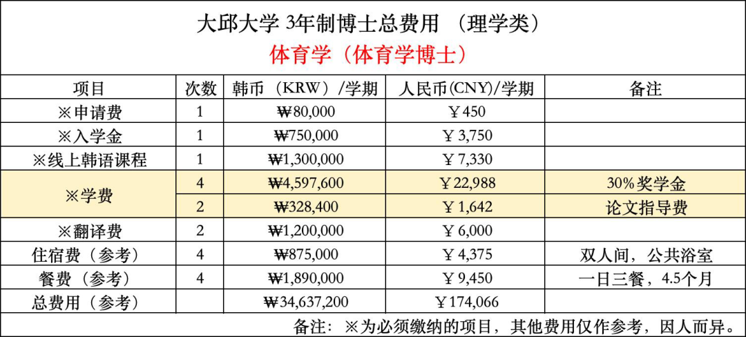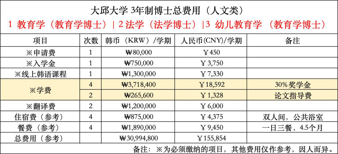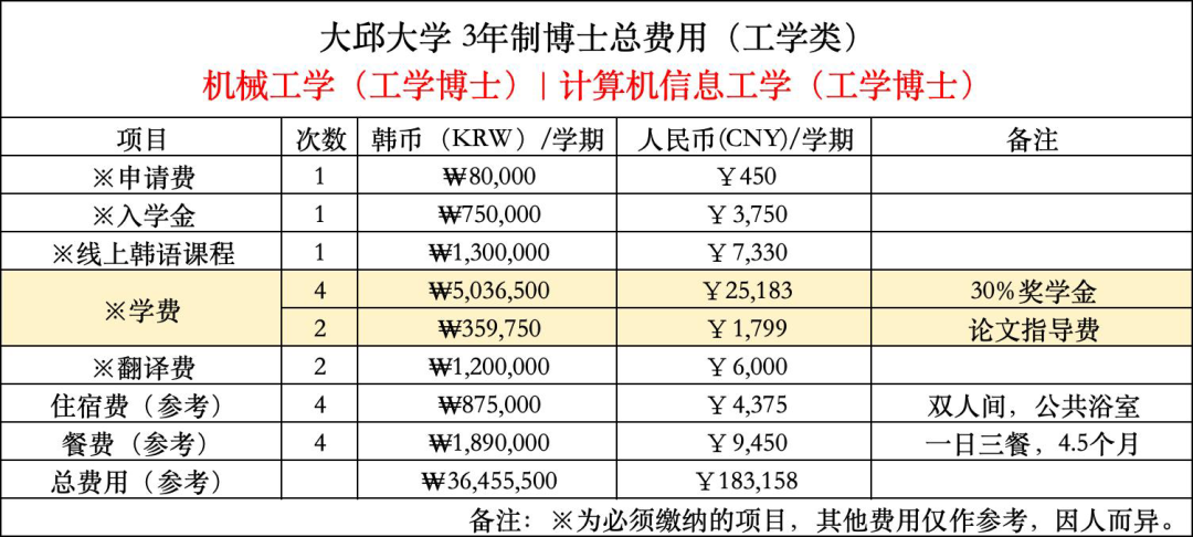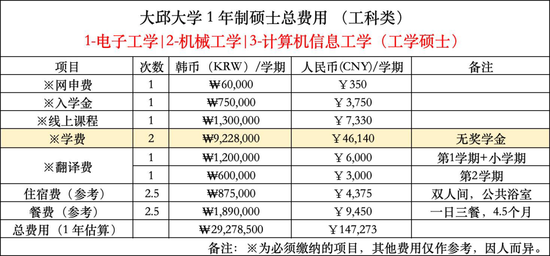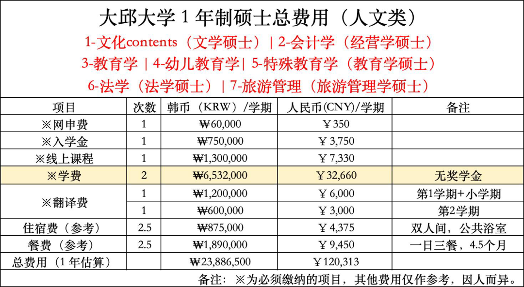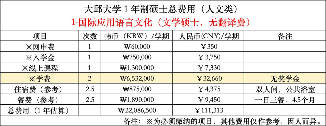 大邱大学双语硕博课程费用参考