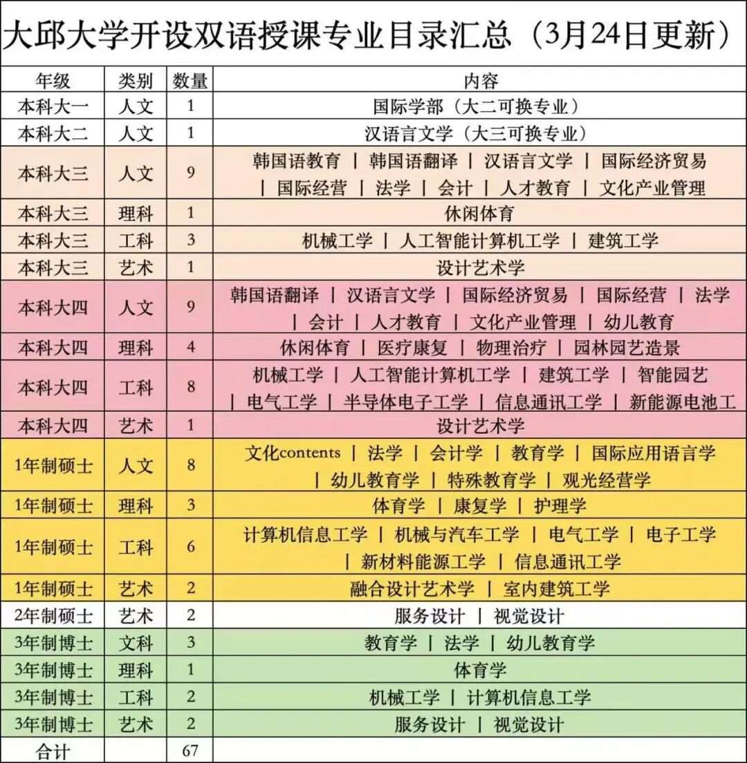 大邱大学双语授课课程目录