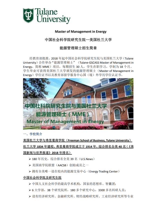 中国社科院与美国杜兰大学能源管理硕士